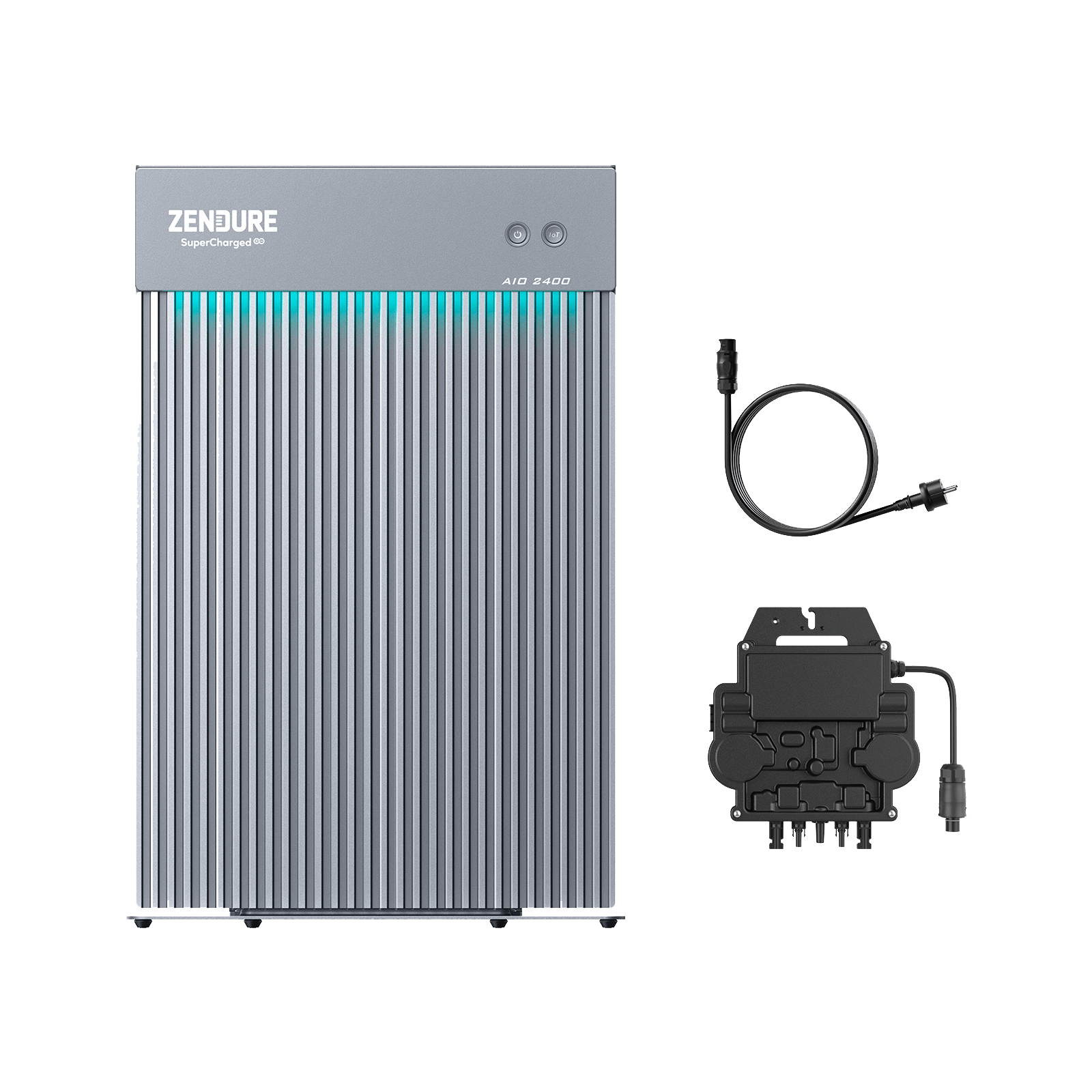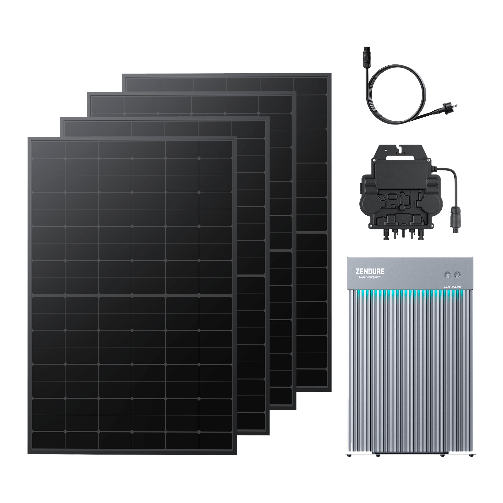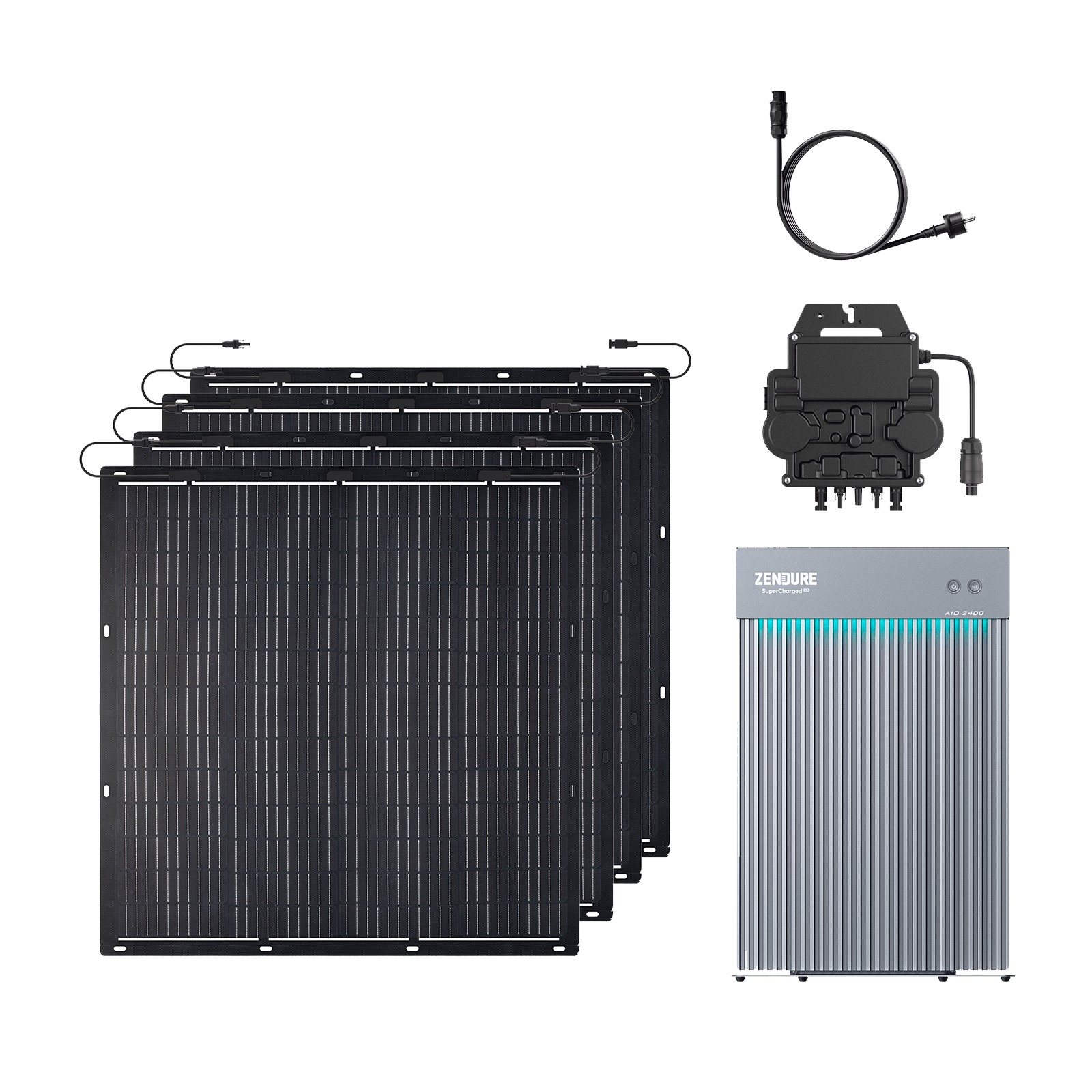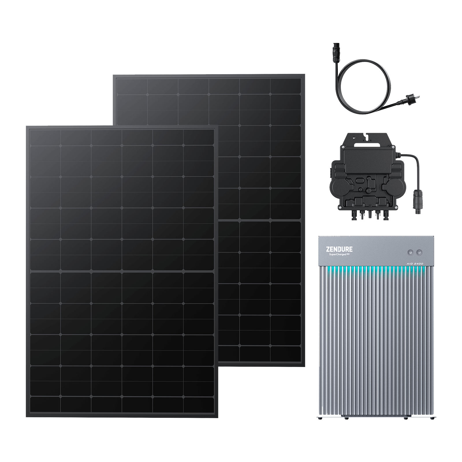A balcony energy storage system consists of solar panels, a solar energy module, batteries, and a micro-inverter. You can order a combination of solar panels, AIO 2400 and a microinverter on the purchase page.
