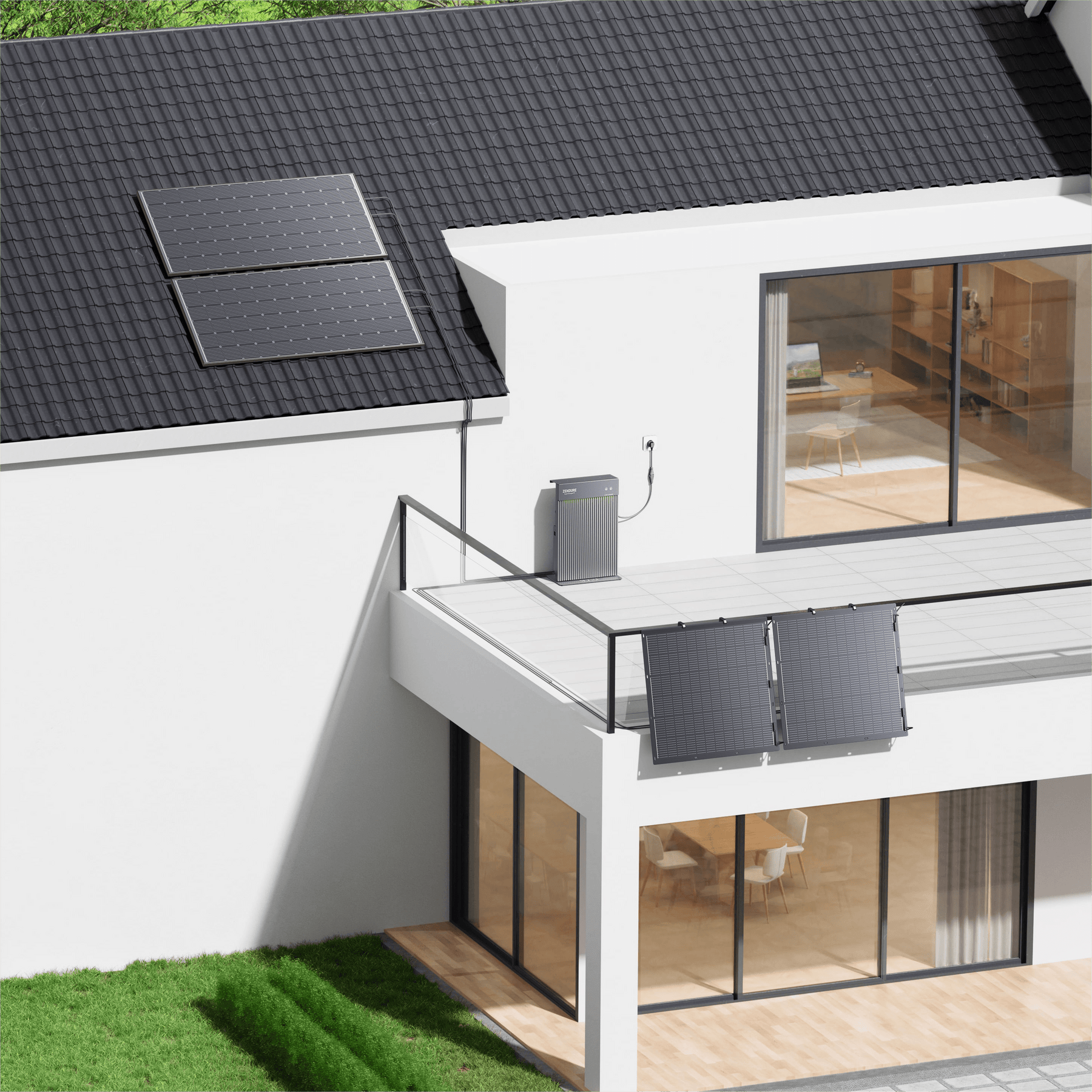 Integrating AIO 2400 with your existing balcony photovoltaic system is easy and hassle-free. Our storage system requires minimal space and features no messy cables, making it an ideal solution for any balcony. Plus, its one-piece design allows you to maximize space and save costs.